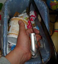 そこで、弓のこを使って、一番端の出っ張り部分を切り取ることにした。 結果、下の写真のようになり、ヘッドホンをはずしたままでも抜き差しができるようになった。また、きっちり差し込んでおくと、音楽を聴いていなくても電気を消費しているようなので(実際、かなりのノイズが常に鳴っている。ただし、音楽を再生し出すとノイズは消える)、使わないときは下の右側のような状態でバッテリーをからの電気を切断しておいておくことにした。 |