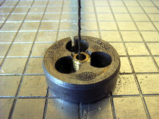 3年生の金属加工で、ねじ切りをさせている。真鍮に6mmのダイスで雄ねじを切るのだが、ダイスがねじの頭に密着しているのもかまわずにさらに切り込むものだから、首の部分からもげてしまう場合がある。(指導不足と言われるとぐうの音も出ないけれど)