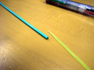 スタイラスのチップとなる部分はアクリル板を使うことにして、細く切り出した。(これもちょうど緑色が余っていた)