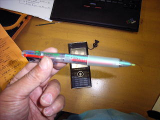 以前から電気屋へ寄ればいいものがないかどうか物色はしていた。先日、インターネットショップを見ているとサンワサプライの6in1スタイラスペンというのが1000円ちょっとで売っていたのでよっぽど購入しようかと思ったが、すんでのところでやめた。このペンはドライバーなども入っていていいのだが、文字を書くための道具がたいていのものと同じく黒ボールペンとシャープペンシルとなっている。自分はシャープペンシルはあまり使わないし、どちらかというと赤と青のボールペンの方がありがたい。また、決定的に納得いかなかったのはPDA用のスタイラスが、ペンの反対側をとがらせた形式だったことだ。プラスチックとはいえとがった部分が露出しているのは危ないし、破損もしやすい。なかなか自分に合うものはないなぁと感じていたところだった。