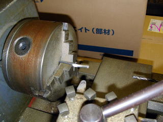 さて旋盤を使いましょうと思ったところ、モータが逆回りしている。3相なので端子をつなぎ換えて正転させた。刃物台についたバイトを見ると、買ったままの状態で全く研いでいなかった。それでも周りには多少キリコがでているので、これで削ったのかな。きっとほとんど削れなかったのだろうな。(さて、前回旋盤を使ったのはどなたなんでしょう。ひょっとすると買ってからほとんど使わずの状態だったのかも・・・)。考えてみると、この部屋は5年前に新築したんだった。そのときにつなぎ方を間違えたんでしょう。おそらくこの5年間は全く使わなかったんだろうな。しかし、研いでいないバイトで削ったのはその前のことでしょう。