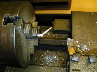 何回か試したが、少し長く削ろうとすると、やはり折れてしまう。片側をチャックで持つだけでなく。センタで反対側を押さえてやればいいのだろうが、遅くなってしまったこともあって今日はここまでとした。