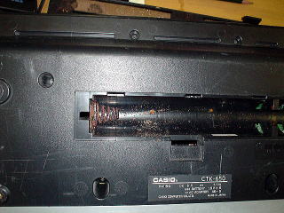 音楽会が近くなったが、教室のオルガンが調子悪いこともあって、自宅にあるキーボード(PC用ではなく、シンセサイザー)を学校へ持って行こうとしたが、ACアダプターが見つからない。家でもただ邪魔者になっていただけだった。それじゃ、電池で駆動するしかないかと思ったが、そういえば以前に液漏れをやらかして端子がだめだめになっていたんだった。朝のどたばただったので、手持ちのアダプターやら、車用に作った変換器(7809をつかった3端子レギュレータで9Vにするもの)をもっていたが、どうも調子が悪かった。