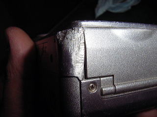 自分のものの映像。ゆがむは傷はあるは、ストラップの取り付け部はもげているはと、満身創痍といってもいいくらい。