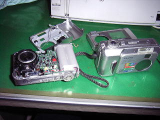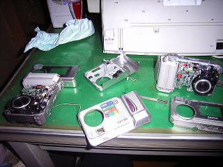 分解した2台のカメラ。両方からよい部分を集めて組み立てた。
