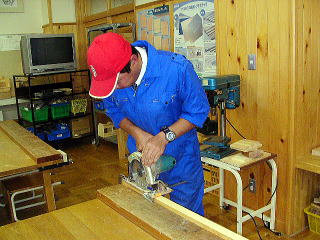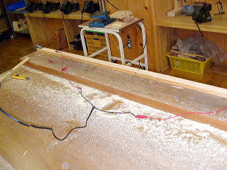 一度に何人もが作業できるように、長い材料を使うことにした。(この方がニクロム線を延ばして使うことができ具合がよい)