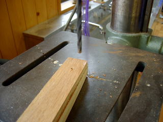 コンクリートも乾いたので、両端に端子を付ける穴を開ける。裏側には端子にするボルトの頭が埋まるように菊座をあける。