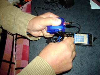 これで、ダイナモを回せば充電することができるので、緊急用には使えそう。回すとLEDランプも点灯するのでちょっとうるさいけれど懐中電灯にもなる。FOMAも含めて多種の携帯用充電アダプタが付属しているし、けっこう小型なので普段持ち歩く鞄に入れておくことにしよう。