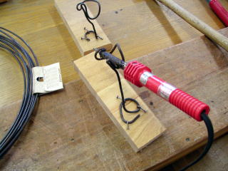 以前、一般的に売られているハンダごて台のように、バネ状に針金を曲げてみたが今ひとつ上手くなかったので、今回はもう少し接触部分を小さくして保持するようにしてみた。