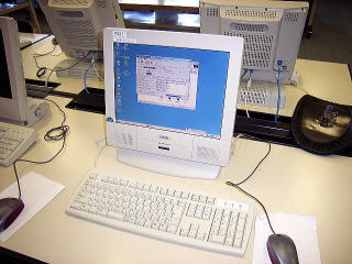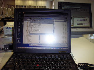 学校のPCはパネルトップなのでディスプレイの裏側に232Cポートがある。