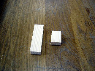材料は1年生の木工の端材。まだまだたくさんとってある。そこから同じ幅で2つの木ぎれを切り出した。