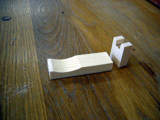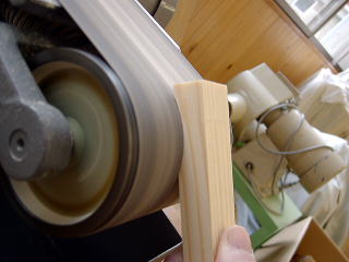 長い方はベルトサンダーでRを削りだしてさじの部分が収まる場所を、短い方は柄を載せる溝を切った。
