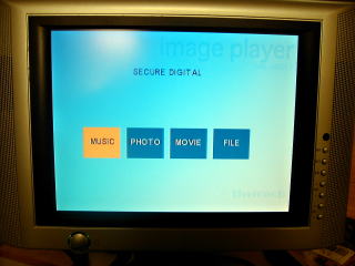 最初のメニュー、動画の他に音楽(MP3のみ)、写真(JPG)なども再生できる。