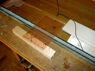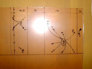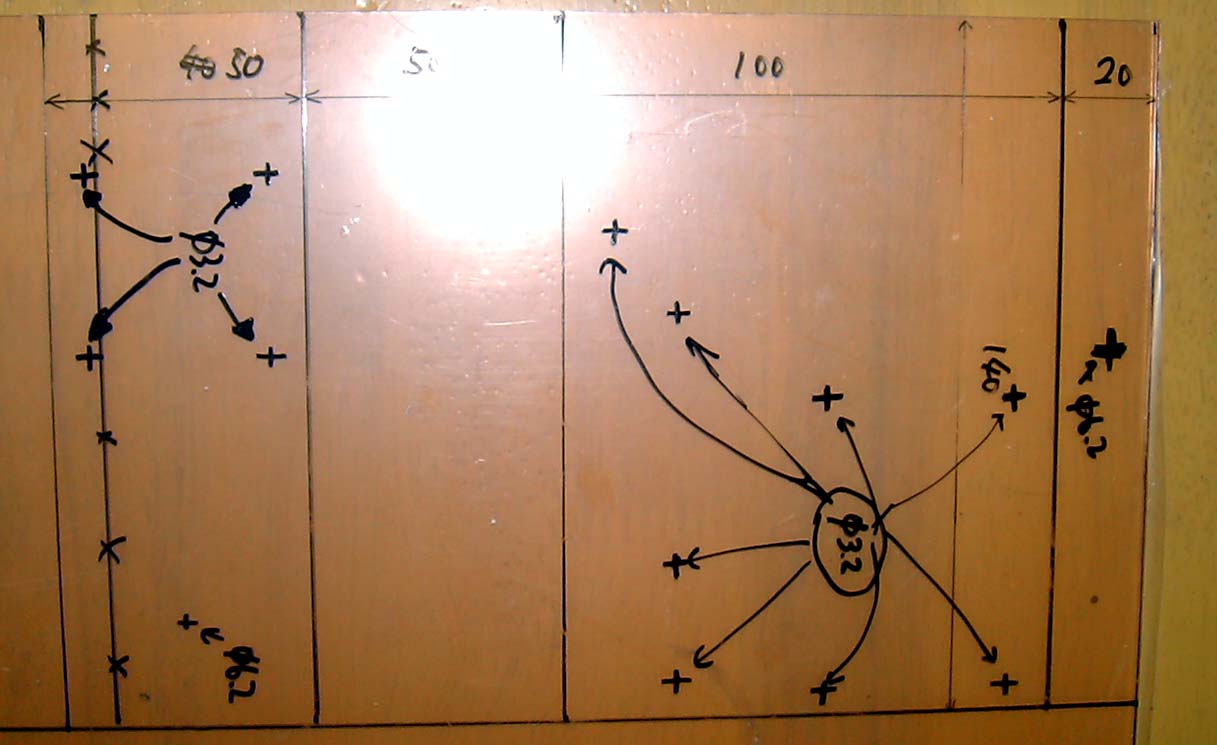 今回もPETを筐体に利用。マジックでけがき線を入れた。(クリックで大きくなります)