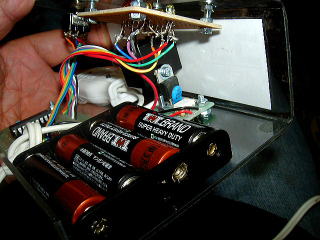 LEDは空中配線。アース側はすべて真ん中に集めて接続した。ACコードは後ろ側に穴を開けてそこから通して出し、引っ張っても大丈夫なように結び目を付けた。