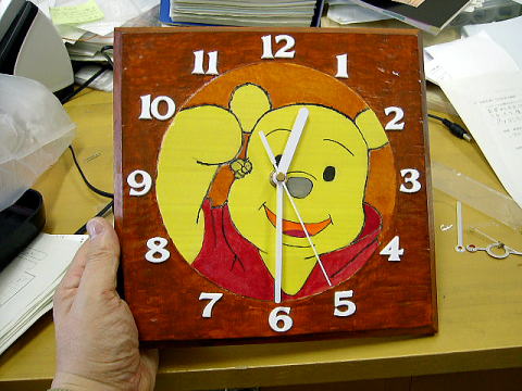 同じ学校の先生の娘さんが、美術で作ったらしい壁掛け時計が壊れてしまったということで相談を受けた。もう何年も前に作ったものらしいけれど、ずっと使っていて何かの拍子に壊れたらしい。授業で作った作品を使い続けているなんて何ともうらやましい話で、これは一肌脱がなければならないと二つ返事で引き受けた。
