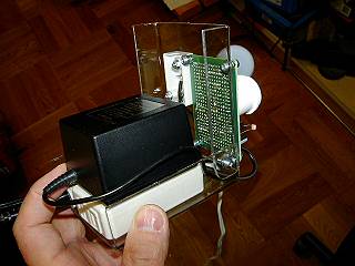 センサーの隣にランプを付け、下の部分をネジで留めて一緒に角度を調整できるようにした。ランプは直接接続せず、プラグを介してリレーからの出力につなぐ。必要に応じて他の電気機器をつなぐことができるようにした。このリレーは200wまで使えるので、3つ口コンセントなどを入れてもいいかな。
