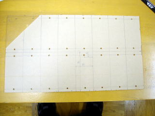 横40mm×縦90mmで分割して、上下は8mmの位置に穴をあける。