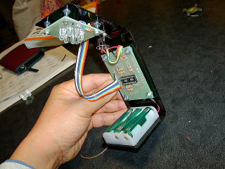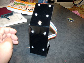 幅は単3電池3本用ボックスと基盤にあわせ、上にLED基盤を固定。首の部分にPICの基盤を固定した。