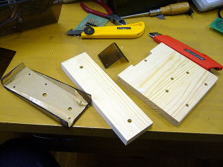 できあがった部品。スイッチはアクリル板を曲げてベースにネジ止めするようにした。