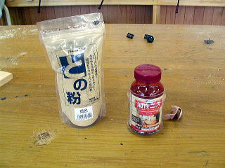 砥の粉を使うのも久しぶり、カップラーメンの容器で溶いてはけ塗りした。
