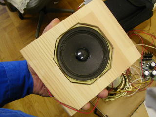 八角形のスピーカは6Ωのビクター製、スペックはわからないので、単純な密閉型のボックスにした。