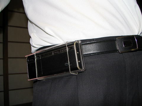 腰に装着した状態。最初は布でカバーを作ろうと思ったが、それほど傷を気にすることもないので