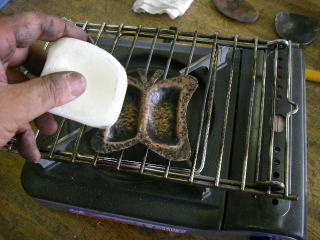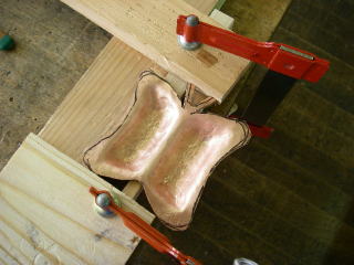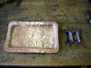 夏休みの技家研修。南箕輪中にて銅板をたたいて作る。ジグを工夫してデザインに生かしたつもり。