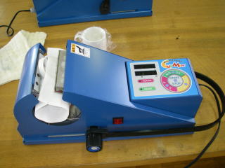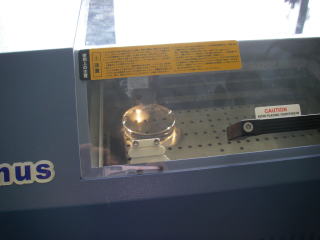 夏休み研修2日目、マグカップに転写して写真を貼り付ける機械と、右側はレーザー加工機。岡工と駒工にあるだけとか。