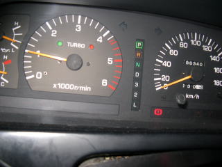 このランプがついていると、常にターボタイマーが作動してしまう(ターボタイマーはサイドブレーキを引いた状態でエンジンを切ると作動するように設定されている)ので、夜中に帰ってきたときは気を遣って大変。(キーを抜いた後、シフトレバーをドライブに入れることで強制的にとめることはできる)