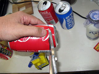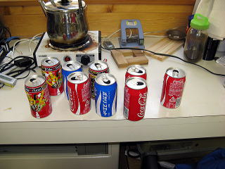 隣の村民体育館の休憩コーナーから空き缶をもらってきた。