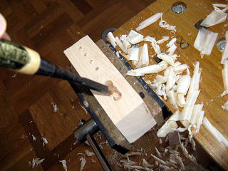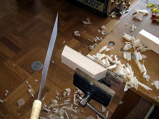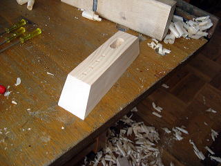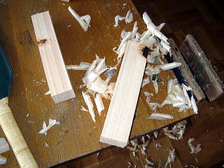材料は,材木屋でもらってきたひのきの木っ端。延べ棒みたいに台形にしてみた。