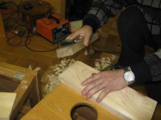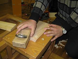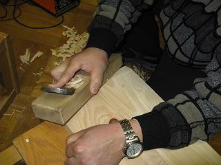 のこぎりで切って,木表,木裏ともにかんなをかける。これはむずかしいかな。