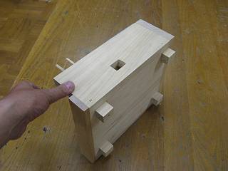 後ろ側はドリルで穴あけをして、のみで仕上げた角穴。