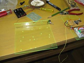 実験用なので、アクリル板1枚にすべての部品を並べて製作。