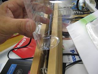 現物あわせで、はさみを使ってカットして曲げてみる。材料が手に入りやすいので思い切って作業できる。