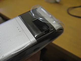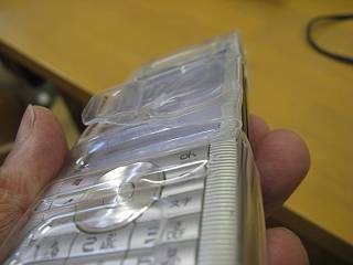 Advanced W-ZERO3[es]は画面とテンキーの間に段差があるので、ペットボトルのくびれがここに来るようにした。