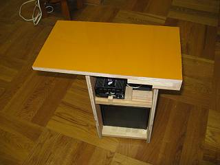 ヒンジで折りたためるようにしようと思ったが、厚さや材料の関係から取り外して使うようにした。