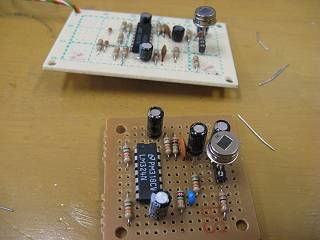 後ろに見えるのは今まで使っていた人検知基盤。手前が今回作ったもの。