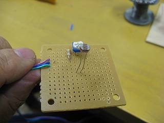 使ったのはcds。直列に抵抗を入れて、破損対策をする。調整用に半固定抵抗もいれてみた。