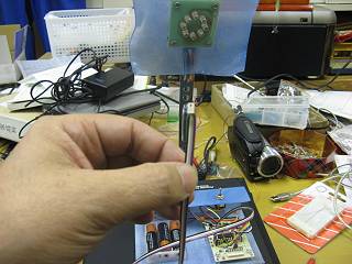こんな形で、コネクタ側にコンデンサをハンダ付けしてアナログポートに接続した。