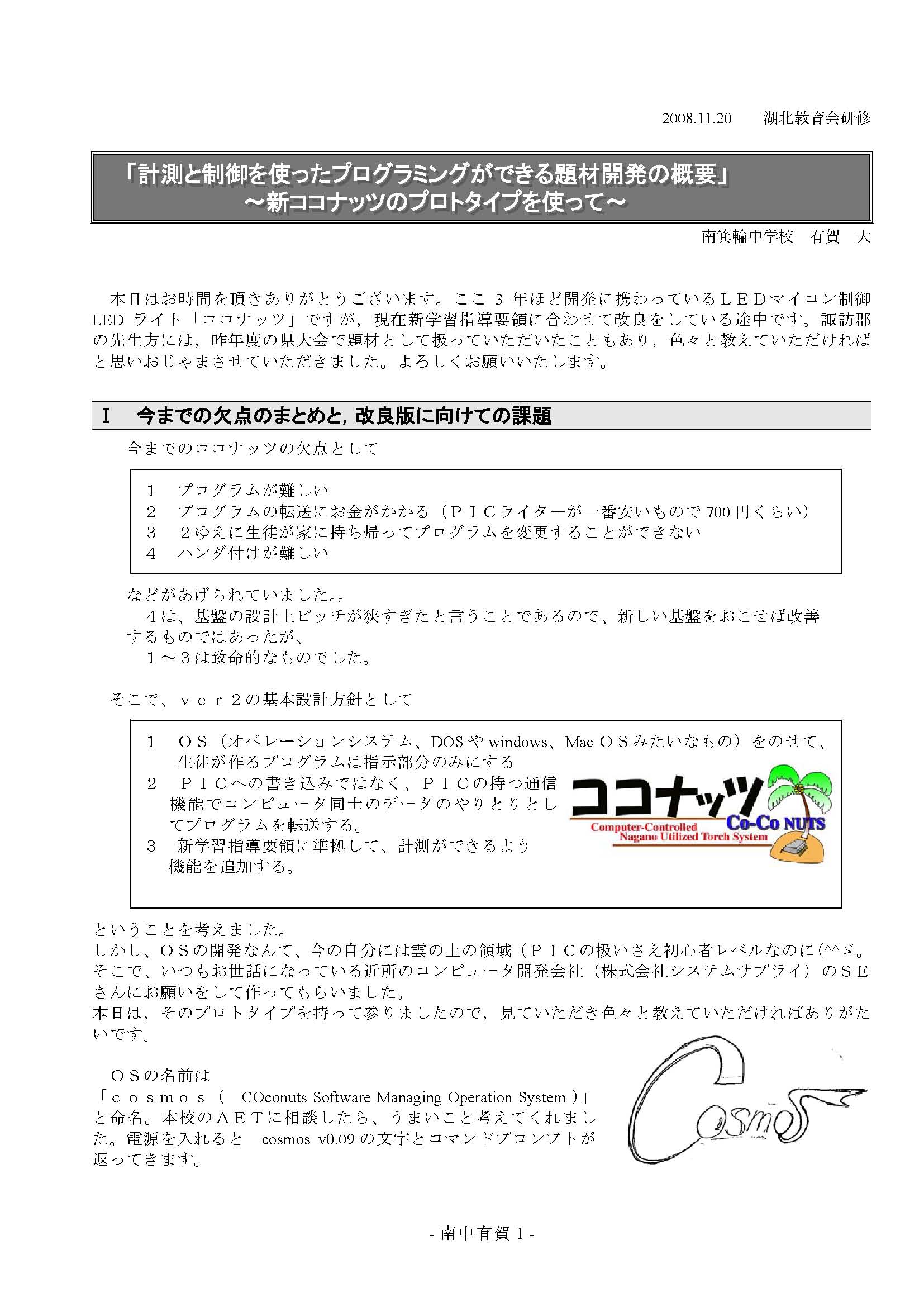 先週、湖北教育会に呼ばれて新しいココナッツのデモを行った際に配布した文書。