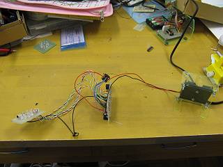 これで光らせることができた。ちなみに基盤の左側へつながっている赤黒のコードがLEDから伸びてPWMポートへ刺さっている。