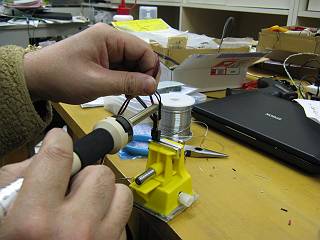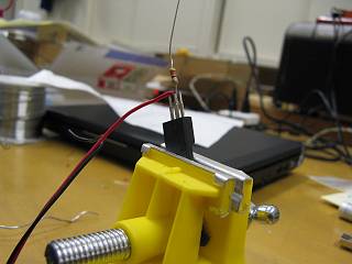 空中配線で、電圧設定用の抵抗を取り付けてみる。