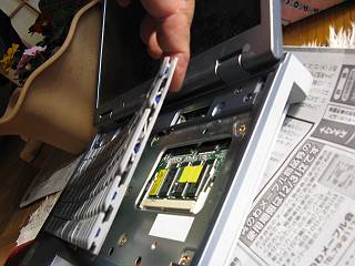 確かに、今時のノートと違って、かなり奥まったところにあった。webの資料もあったおかげで、なんとかなった。(しかし、本当は裏蓋を外す必要はなかった)