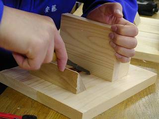 20mm厚の檜材を使ったので、板の切断は機械でやってやった。
