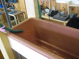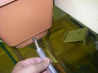 本当は蛇口でもつければ水量のコントロールが楽なんだろうけれど、コストがかかるのでホースを押さえつけることでやってみた。