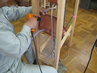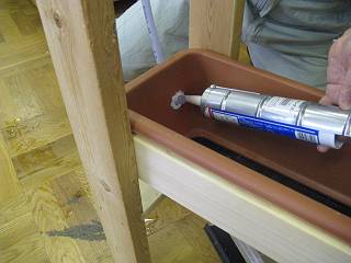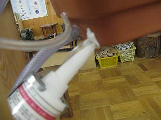 ホースをつないでコーキング剤で固める。