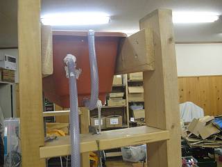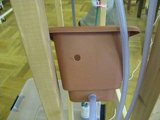 当然、オーバーフローだけではたまったままになってしまうので、下部からも細いビニールホースで抜いて時間差を作ることにする。