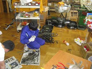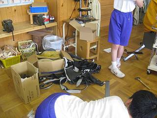 そうなると、古い椅子がゴミになるので、休日のクラブで全部分解して資源ごとに振り分け作業を行った。